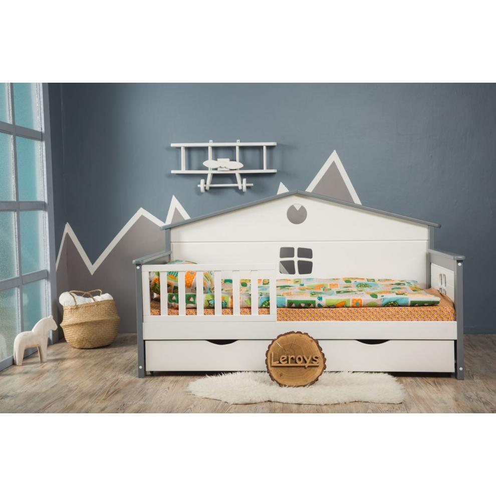 Уникальная и эксклюзивная детская кровать Homa 4 серии Leroys. Необычное исполнение кровати домика добавит уюта в детскую комнату. Кровать домик изготовлена из массива березы с элементами мдф.