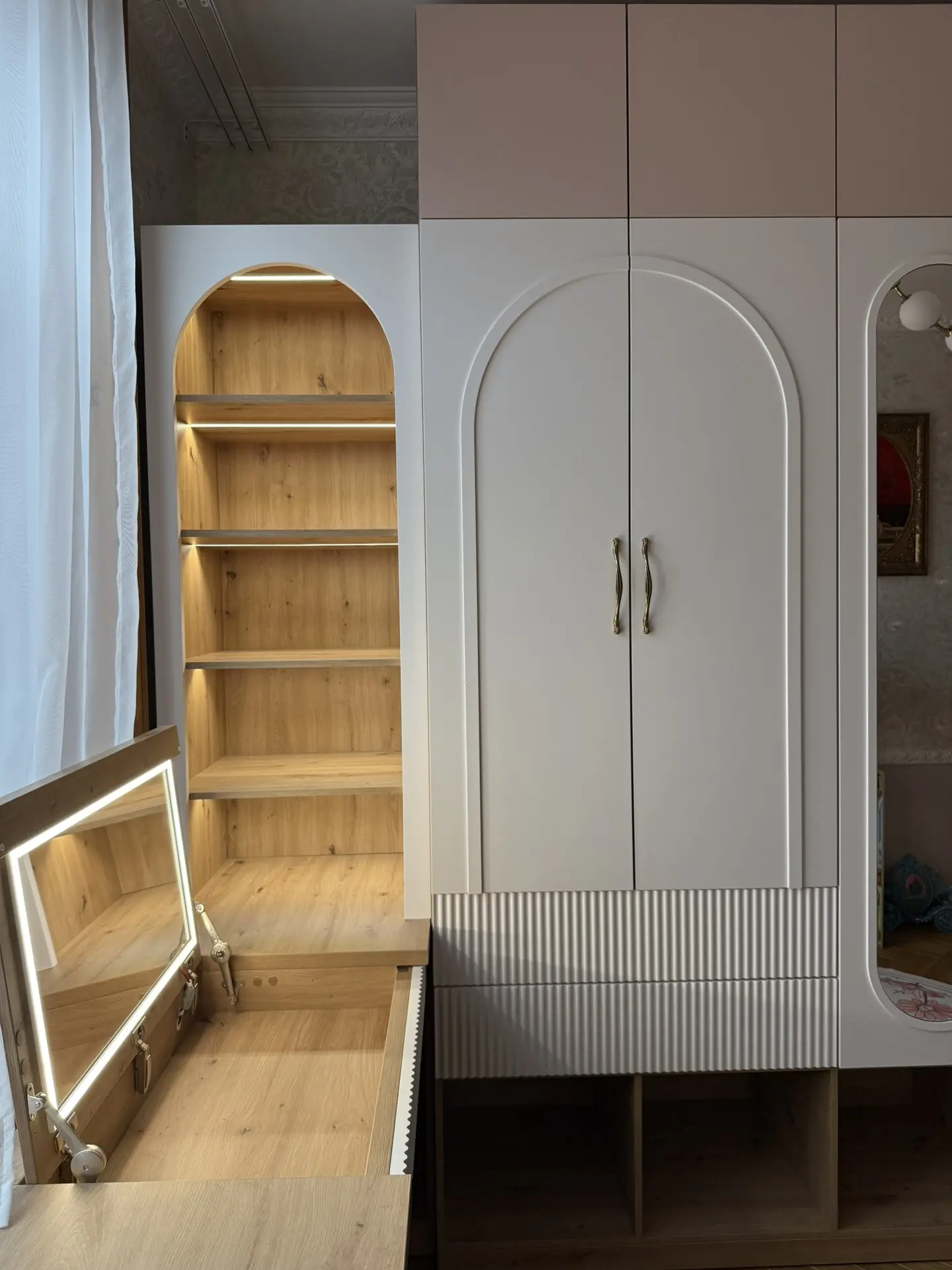 Наши сотрудники помогут определиться с внешним видом мебели на заказ, разработают проект по индивидуальным размерам.
