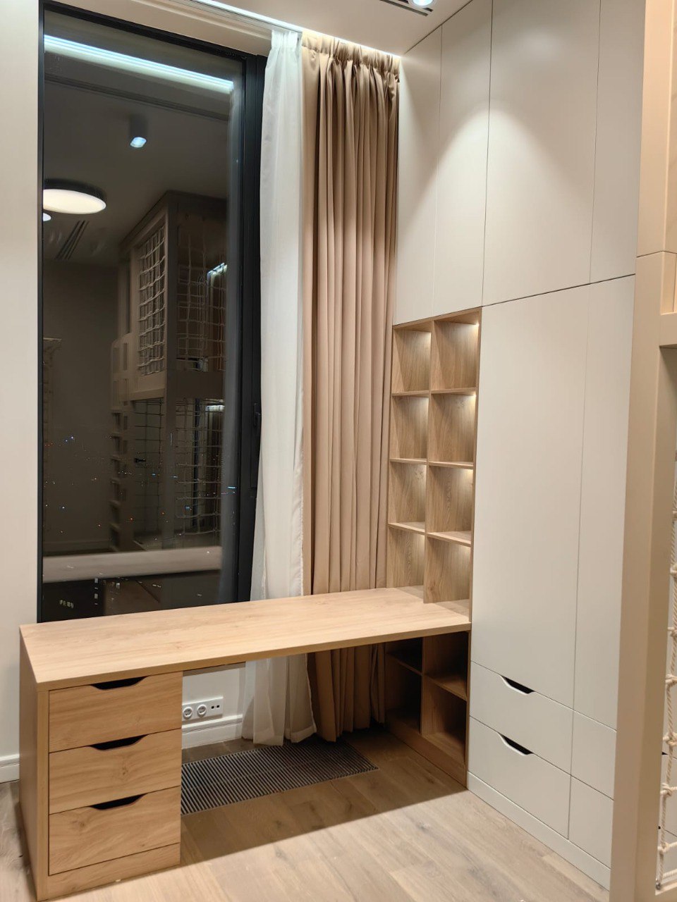 Наши сотрудники помогут определиться с внешним видом мебели на заказ, разработают проект по индивидуальным размерам.